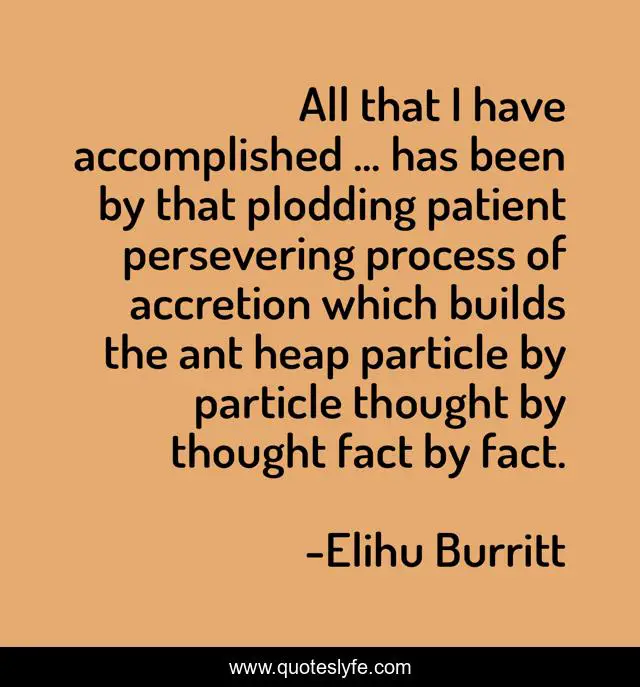 All that I have accomplished ... has been by that plodding patient persevering process of accretion which builds the ant heap particle by particle thought by thought fact by fact.
