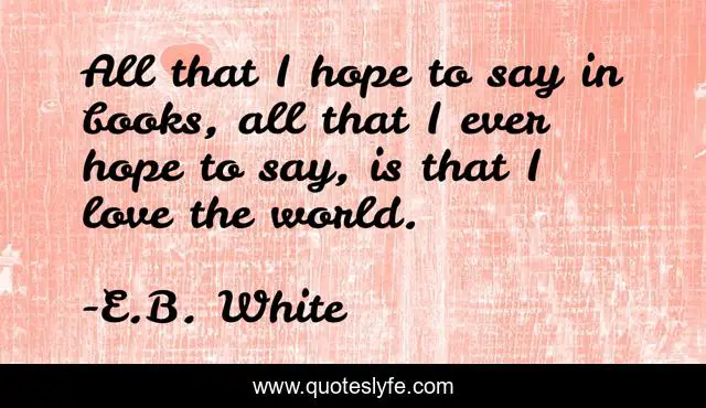 This page presents the quote "All that I hope to say in books, all that I ever hope to say, is that I love the world.". Author of this quote is E.B. White. .