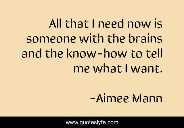 This page presents the quote "All that I need now is someone with the brains and the know-how to tell me what I want.". Author of this quote is Aimee Mann. .