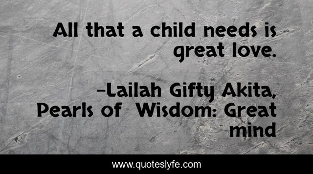 "Lailah Gifty Akita, Pearls of Wisdom: Great mind Quotes." Quoteslyfe.com, 2025. Mon. 08 Dec. 2025. <https://www.quoteslyfe.com/quote/All-that-a-child-needs-is-great-48195>.
