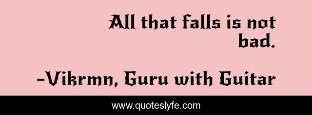 This page presents the quote "All that falls is not bad.". Author of this quote is Vikrmn, Guru with Guitar. This quote is about gwg, vikram, positive, motivational, confidence, ca-vikram-verma, guru-with-guitar, bad, tune-play-repeat,.