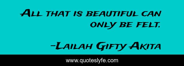 This page presents the quote "All that is beautiful can only be felt.". Author of this quote is Lailah Gifty Akita. This quote is about enthusiasm, life, beauty, inspirational,.