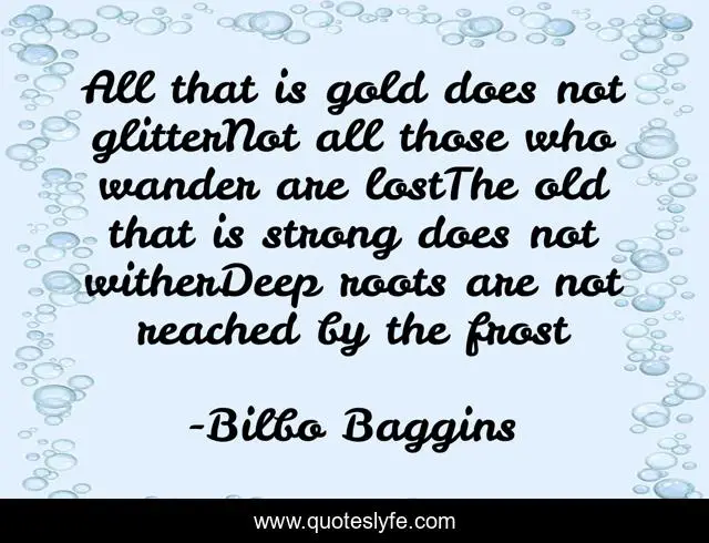 All that is gold does not glitterNot all those who wander are lostThe old that is strong does not witherDeep roots are not reached by the frost