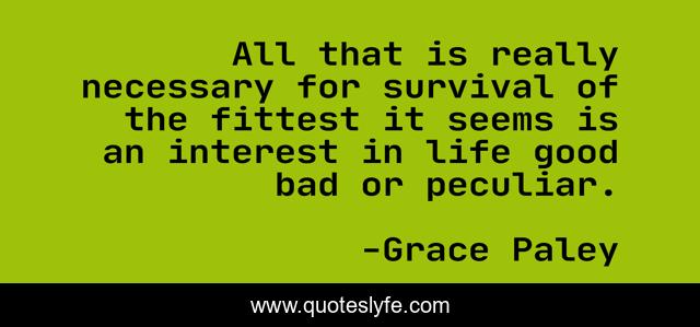 This page presents the quote "All that is really necessary for survival of the fittest it seems is an interest in life good bad or peculiar.". Author of this quote is Grace Paley. .