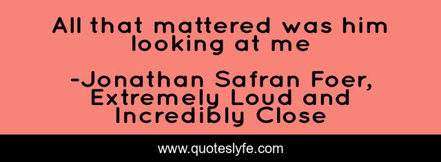 This page presents the quote "All that mattered was him looking at me". Author of this quote is Jonathan Safran Foer, Extremely Loud and Incredibly Close. This quote is about attention, love, him, affection,.