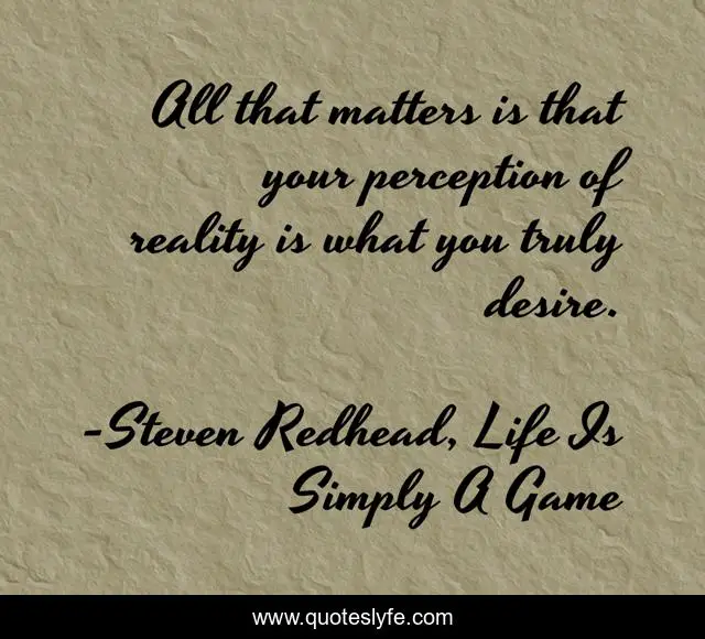"Steven Redhead, Life Is Simply A Game Quotes." Quoteslyfe.com, 2025. Fri. 05 Dec. 2025. <https://www.quoteslyfe.com/quote/All-that-matters-is-that-your-perception-93827>.