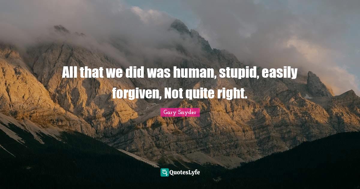 This page presents the quote "All that we did was human, stupid, easily forgiven, Not quite right.". Author of this quote is Gary Snyder. This quote is about stupid, forgiven, humans,.