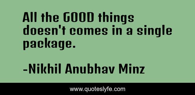 This page presents the quote "All the GOOD things doesn't comes in a single package.". Author of this quote is Nikhil Anubhav Minz. .