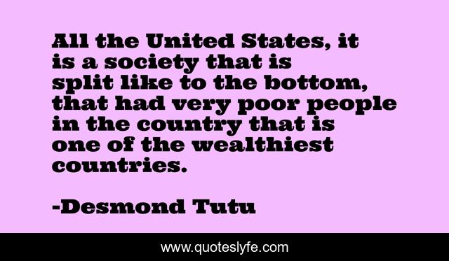 This page presents the quote "All the United States, it is a society that is split like to the bottom, that had very poor people in the country that is one of the wealthiest countries.". Author of this quote is Desmond Tutu. This quote is about poor, country, people,.