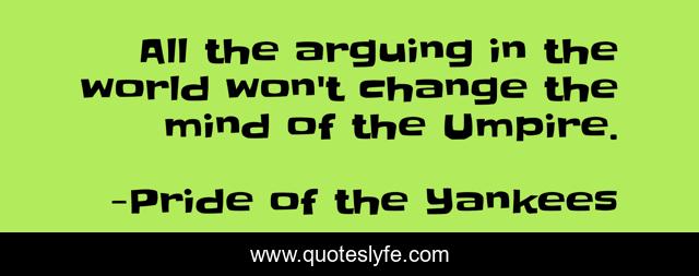 This page presents the quote "All the arguing in the world won't change the mind of the Umpire.". Author of this quote is Pride of the Yankees. This quote is about contentment, sovereignty-of-god,.