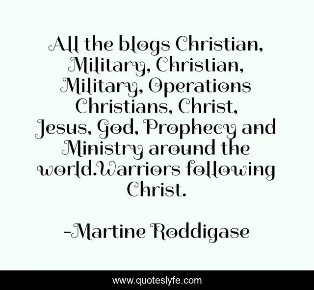 "Martine Roddigase Quotes." Quoteslyfe.com, 2025. Tue. 09 Dec. 2025. <https://www.quoteslyfe.com/quote/All-the-blogs-Christian-Military-Christian-Military-85653>.