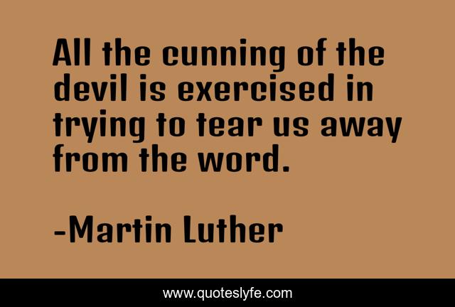 This page presents the quote "All the cunning of the devil is exercised in trying to tear us away from the word.". Author of this quote is Martin Luther. This quote is about religion, devil, evil, christianity,.