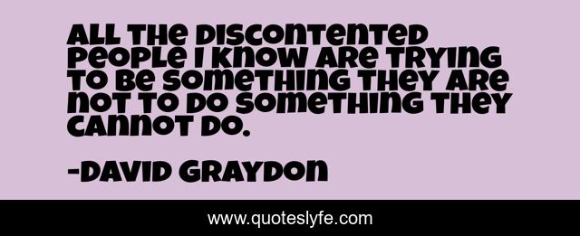 This page presents the quote "All the discontented people I know are trying to be something they are not to do something they cannot do.". Author of this quote is David Graydon. .