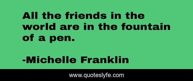 This page presents the quote "All the friends in the world are in the fountain of a pen.". Author of this quote is Michelle Franklin. This quote is about romance, fantasy, friendship, writing,.