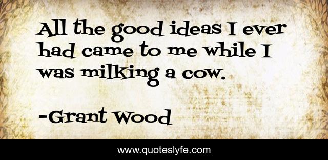 This page presents the quote "All the good ideas I ever had came to me while I was milking a cow.". Author of this quote is Grant Wood. This quote is about me, ideas, cow,.