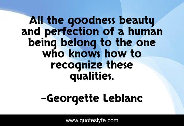 This page presents the quote "All the goodness beauty and perfection of a human being belong to the one who knows how to recognize these qualities.". Author of this quote is Georgette Leblanc. .