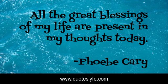 This page presents the quote "All the great blessings of my life are present in my thoughts today.". Author of this quote is Phoebe Cary. .
