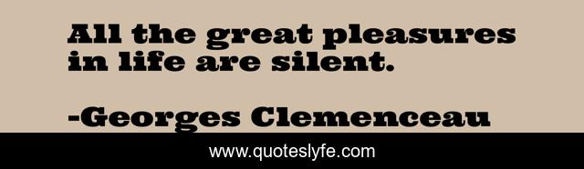 This page presents the quote "All the great pleasures in life are silent.". Author of this quote is Georges Clemenceau. This quote is about enjoyment, pleasure,.