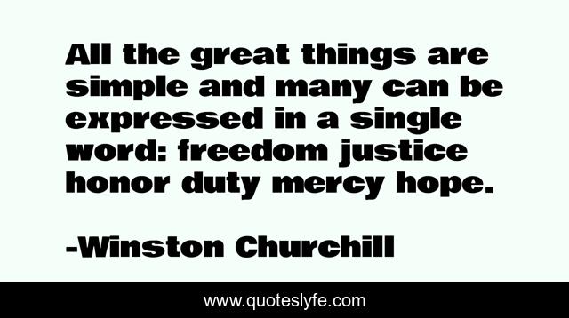 This page presents the quote "All the great things are simple and many can be expressed in a single word: freedom justice honor duty mercy hope.". Author of this quote is Winston Churchill. .