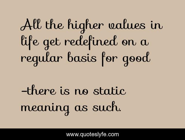 This page presents the quote "All the higher values in life get redefined on a regular basis for good". Author of this quote is there is no static meaning as such.. .
