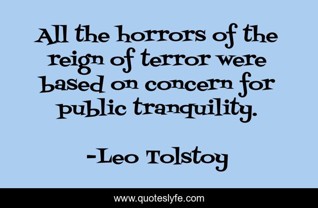 This page presents the quote "All the horrors of the reign of terror were based on concern for public tranquility.". Author of this quote is Leo Tolstoy. This quote is about terror, peace, war, government,.
