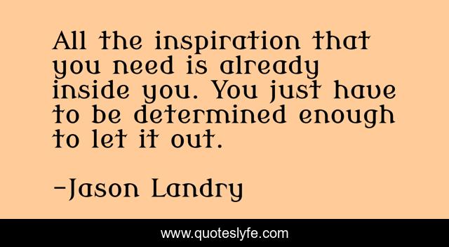 This page presents the quote "All the inspiration that you need is already inside you. You just have to be determined enough to let it out.". Author of this quote is Jason Landry. This quote is about quote, inspiration, quotes-to-live-by,.
