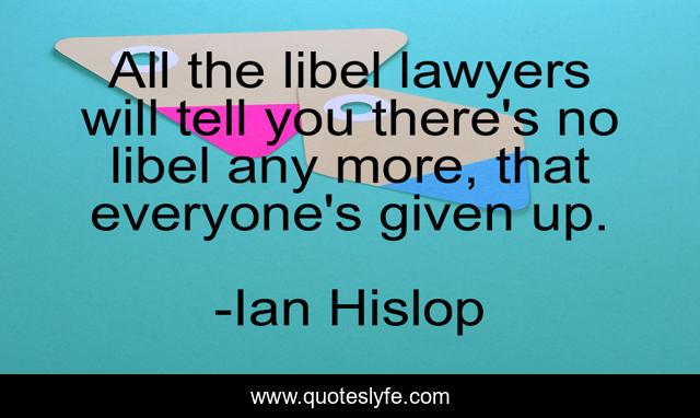 This page presents the quote "All the libel lawyers will tell you there's no libel any more, that everyone's given up.". Author of this quote is Ian Hislop. This quote is about everyone, lawyers,.