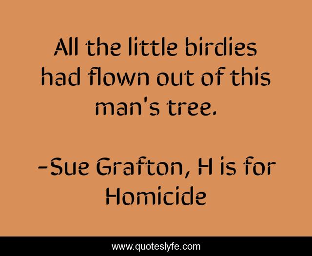 This page presents the quote "All the little birdies had flown out of this man's tree.". Author of this quote is Sue Grafton, H is for Homicide. .
