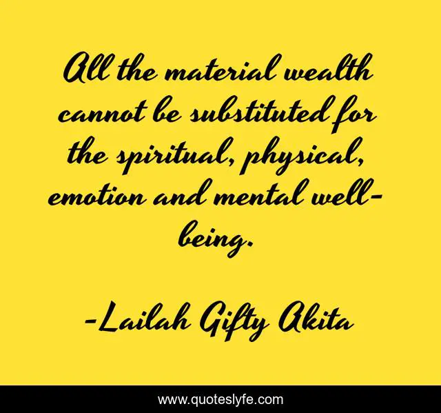 This page presents the quote "All the material wealth cannot be substituted for the spiritual, physical, emotion and mental well-being.". Author of this quote is Lailah Gifty Akita. This quote is about life, wealth, wellness, motivational, spiritual, wisdom-of-lailah-gifty-akita, optimistic, self-help, physical-therapy,.