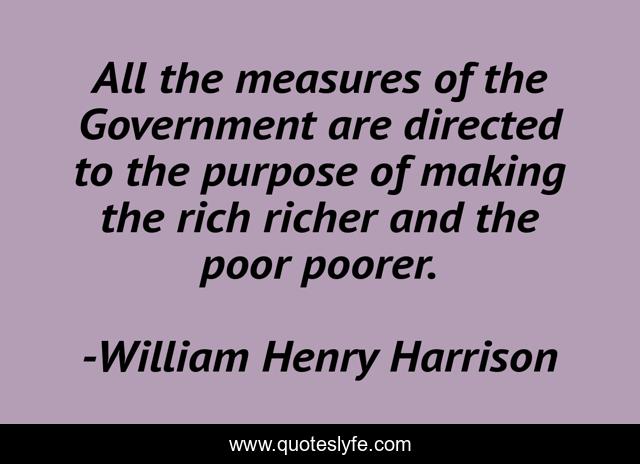 This page presents the quote "All the measures of the Government are directed to the purpose of making the rich richer and the poor poorer.". Author of this quote is William Henry Harrison. This quote is about poor, purpose, rich,.
