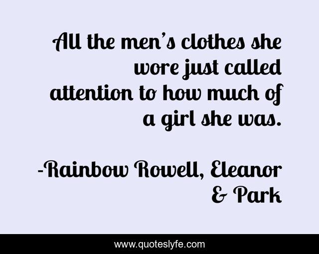 "Rainbow Rowell, Eleanor & Park Quotes." Quoteslyfe.com, 2025. Tue. 09 Dec. 2025. <https://www.quoteslyfe.com/quote/All-the-men-s-clothes-she-wore-249655>.