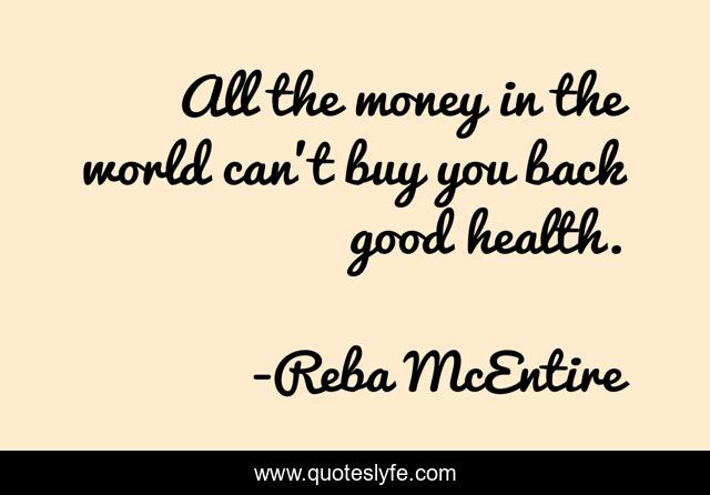 This page presents the quote "All the money in the world can't buy you back good health.". Author of this quote is Reba McEntire. This quote is about money, health, world,.