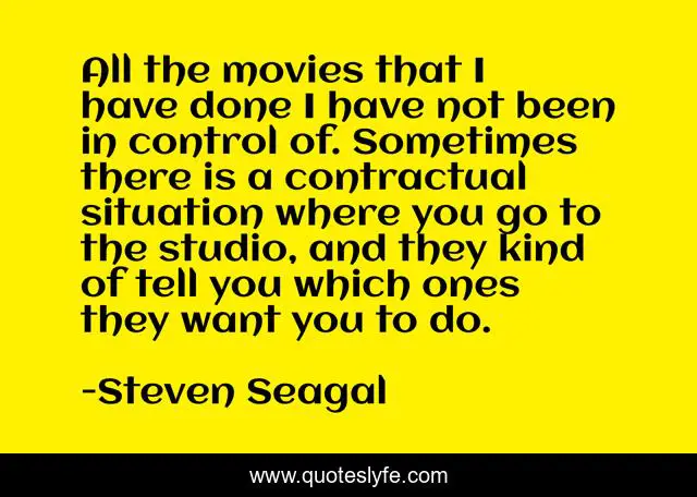 This page presents the quote "All the movies that I have done I have not been in control of. Sometimes there is a contractual situation where you go to the studio, and they kind of tell you which ones they want you to do.". Author of this quote is Steven Seagal. .