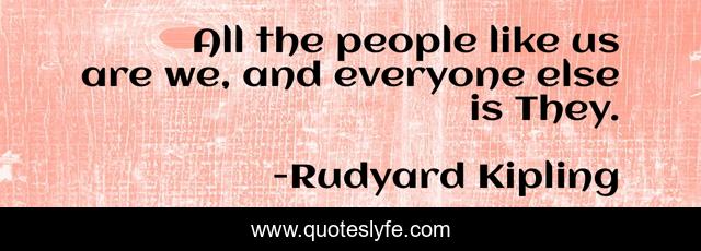 This page presents the quote "All the people like us are we, and everyone else is They.". Author of this quote is Rudyard Kipling. This quote is about everyone, like, people,.