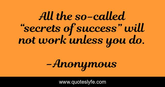 This page presents the quote "All the so-called “secrets of success” will not work unless you do.". Author of this quote is Anonymous. This quote is about so-called, all, unless, work, secrets-of-success, not,.