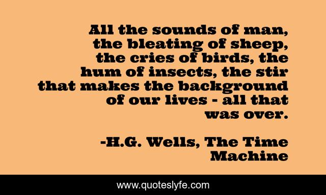 This page presents the quote "All the sounds of man, the bleating of sheep, the cries of birds, the hum of insects, the stir that makes the background of our lives - all that was over.". Author of this quote is H.G. Wells, The Time Machine. This quote is about time-travel, scifi,.