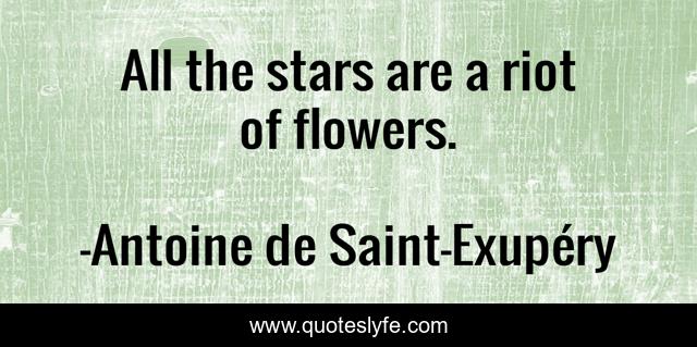 This page presents the quote "All the stars are a riot of flowers.". Author of this quote is Antoine de Saint-Exupéry. .