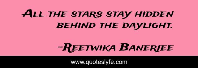 "Reetwika Banerjee Quotes." Quoteslyfe.com, 2025. Sat. 06 Dec. 2025. <https://www.quoteslyfe.com/quote/All-the-stars-stay-hidden-behind-the-90476>.