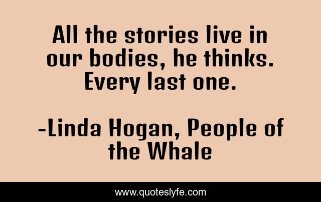 This page presents the quote "All the stories live in our bodies, he thinks. Every last one.". Author of this quote is Linda Hogan, People of the Whale. .