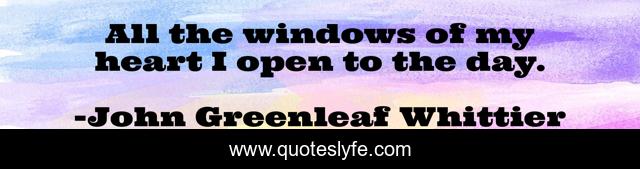 This page presents the quote "All the windows of my heart I open to the day.". Author of this quote is John Greenleaf Whittier. This quote is about windows, heart, day,.
