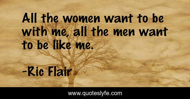 This page presents the quote "All the women want to be with me, all the men want to be like me.". Author of this quote is Ric Flair. This quote is about me, men,.