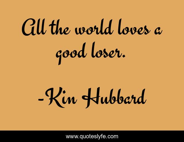 This page presents the quote "All the world loves a good loser.". Author of this quote is Kin Hubbard. This quote is about world, good, loser,.