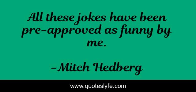 This page presents the quote "All these jokes have been pre-approved as funny by me.". Author of this quote is Mitch Hedberg. This quote is about me, jokes, been,.