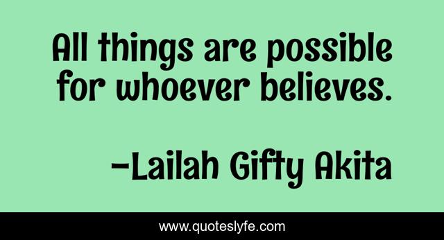 "Lailah Gifty Akita Quotes." Quoteslyfe.com, 2025. Sat. 06 Dec. 2025. <https://www.quoteslyfe.com/quote/All-things-are-possible-for-whoever-believes-54000>.