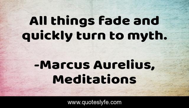 "Marcus Aurelius, Meditations Quotes." Quoteslyfe.com, 2025. Sat. 06 Dec. 2025. <https://www.quoteslyfe.com/quote/All-things-fade-and-quickly-turn-to-7554>.