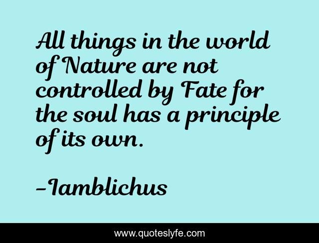 This page presents the quote "All things in the world of Nature are not controlled by Fate for the soul has a principle of its own.". Author of this quote is Iamblichus. .