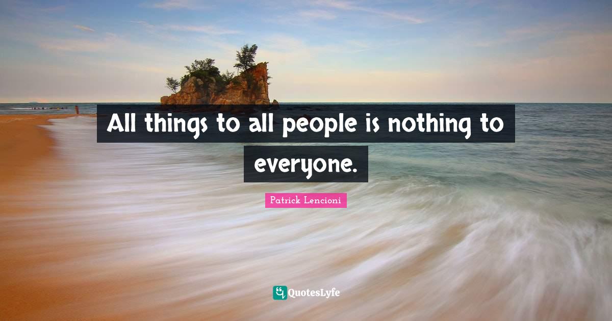 "Patrick Lencioni Quotes." Quoteslyfe.com, 2026. Tue. 13 Jan. 2026. <https://www.quoteslyfe.com/quote/All-things-to-all-people-is-nothing-937406>.