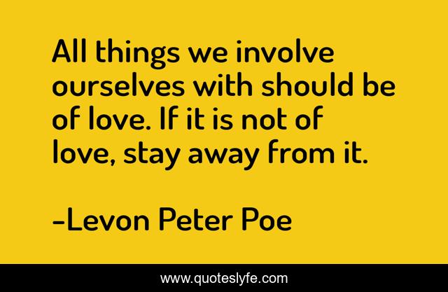 This page presents the quote "All things we involve ourselves with should be of love. If it is not of love, stay away from it.". Author of this quote is Levon Peter Poe. .