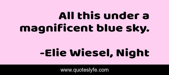 "Elie Wiesel, Night Quotes." Quoteslyfe.com, 2025. Tue. 09 Dec. 2025. <https://www.quoteslyfe.com/quote/All-this-under-a-magnificent-blue-sky-60911>.