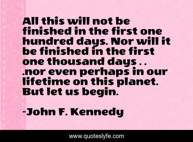 "John F. Kennedy Quotes." Quoteslyfe.com, 2025. Sat. 06 Dec. 2025. <https://www.quoteslyfe.com/quote/All-this-will-not-be-finished-in-91204>.
